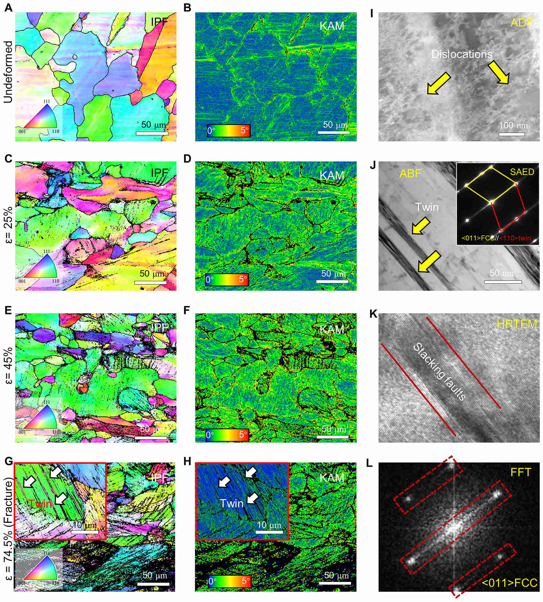 图2 CoCrNi合金的EBSD与TEM/STEM表征结果